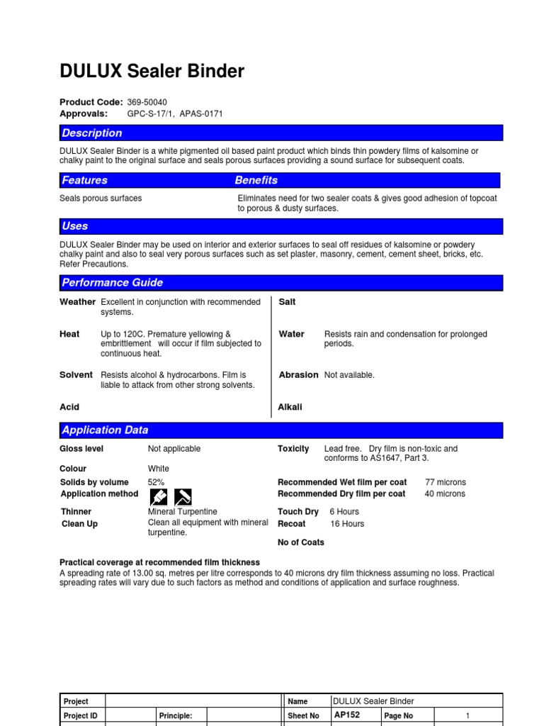 Dulux Sealer Binder PDF Paint Plaster